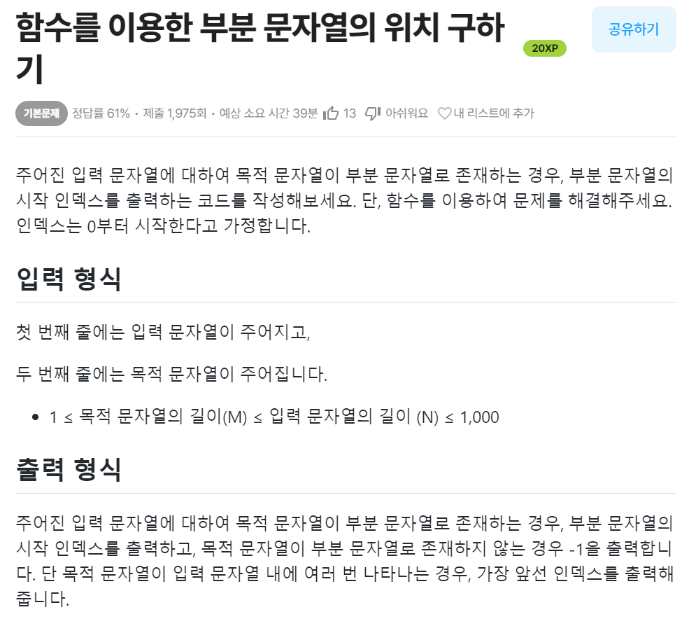 문제 : 함수를 이용한 부분 문자열 위치 구하기