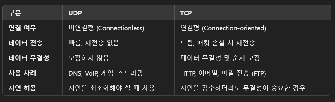 - 이 과정에서 TCP 세션을 유지하고, UDP 패킷은 비연결형으로 처리.