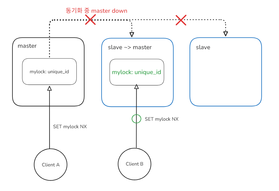 - Client B๊ฐ Master์๊ฒ mylock key๋ฅผ ์์ฒญํ๋ฉด ํ๋ํ ์ ์๋ค.