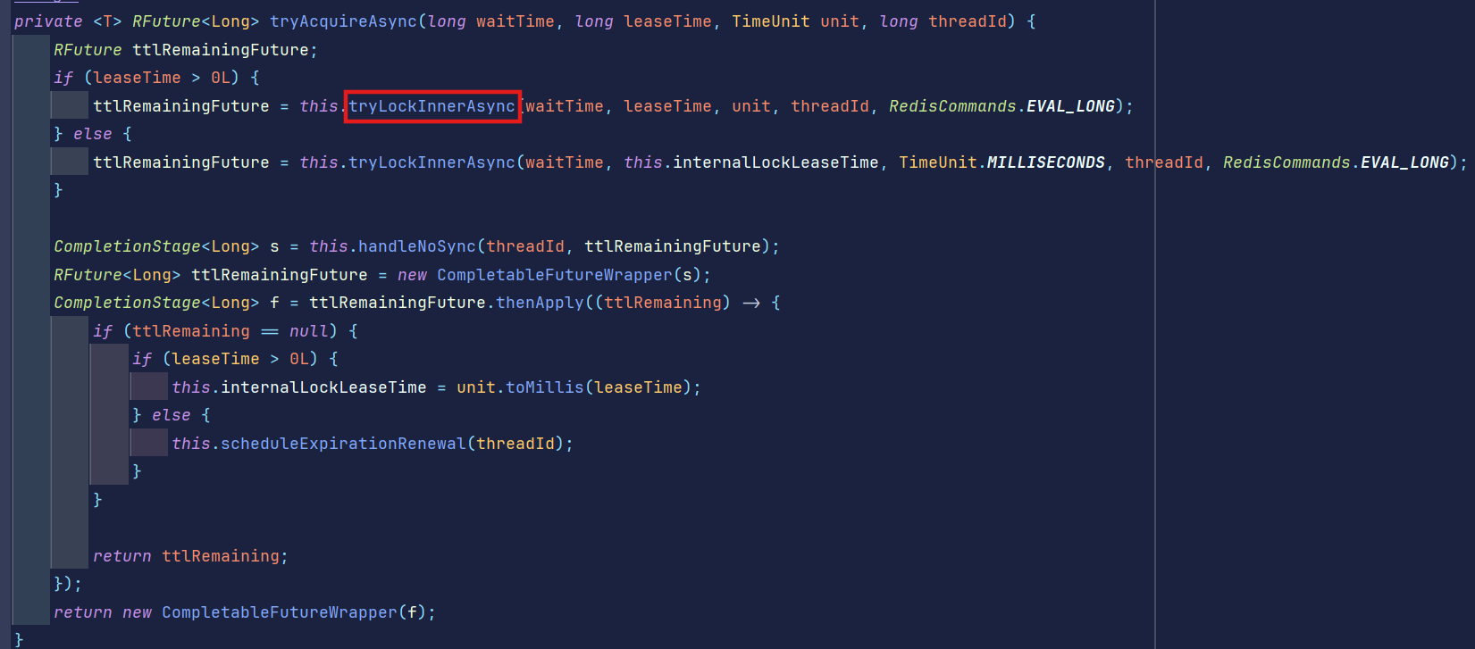 ttl = this.tryAcquire(waitTime, leaseTime, unit, threadId);